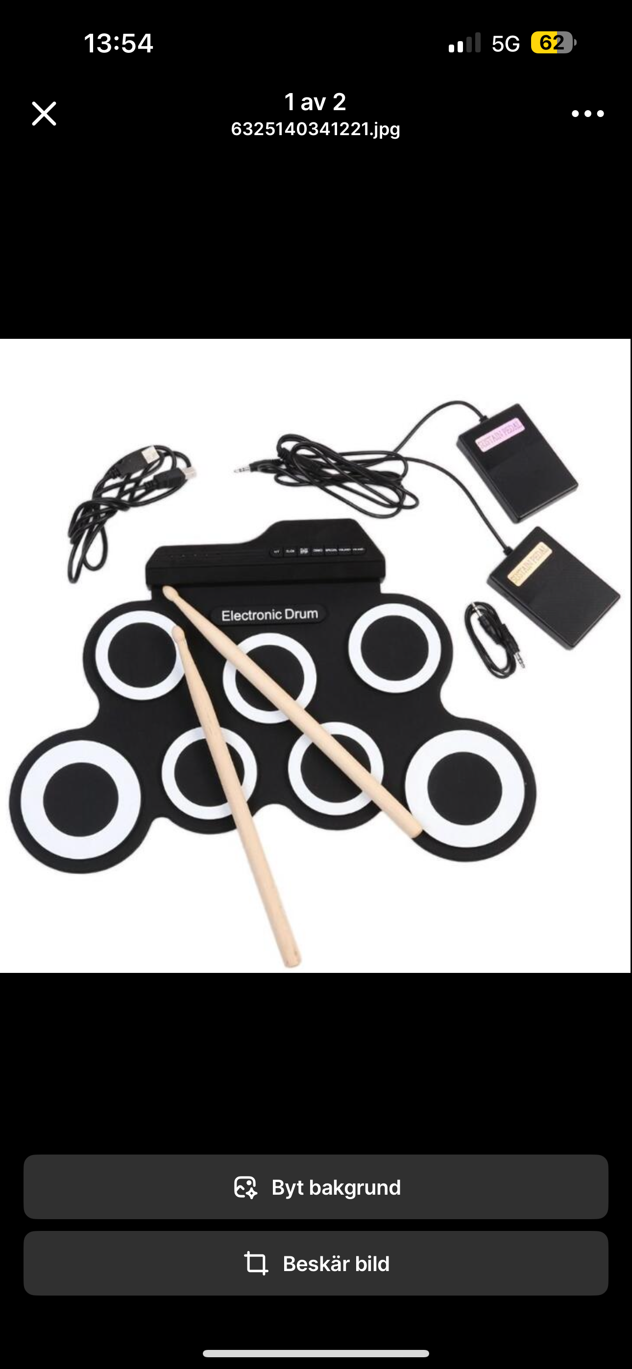 Kom met 'n paar dromstokke, 2 aanhoupedale, 'n USB-kabel en 'n 3,5 mm-klankkabel.