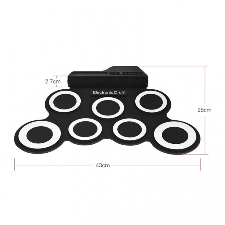 Met 7 silikon-tromkussings, insluitend Tom(3)/Snare/Hi-Hat/Crash/Ride, maak uitstekende klanke en simuleer regte klop-effek.