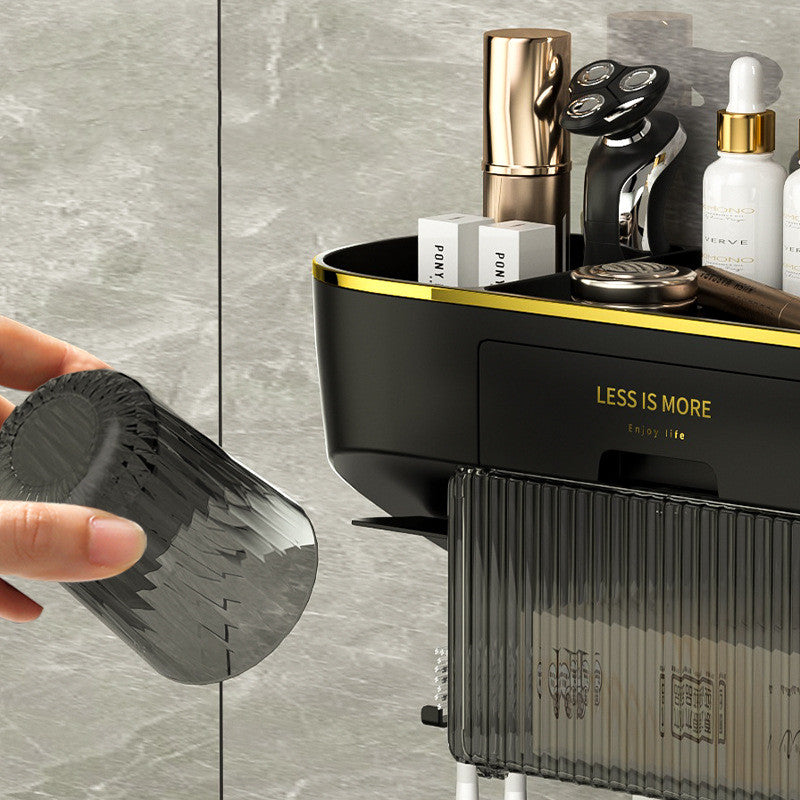 combines the functions of toothpaste dispenser, toothbrush holder, electric toothbrush holder, tissue storage box. With 2 cups and bathroom storage. Stylish styling design, perfect for your bathroom. - Improved design: