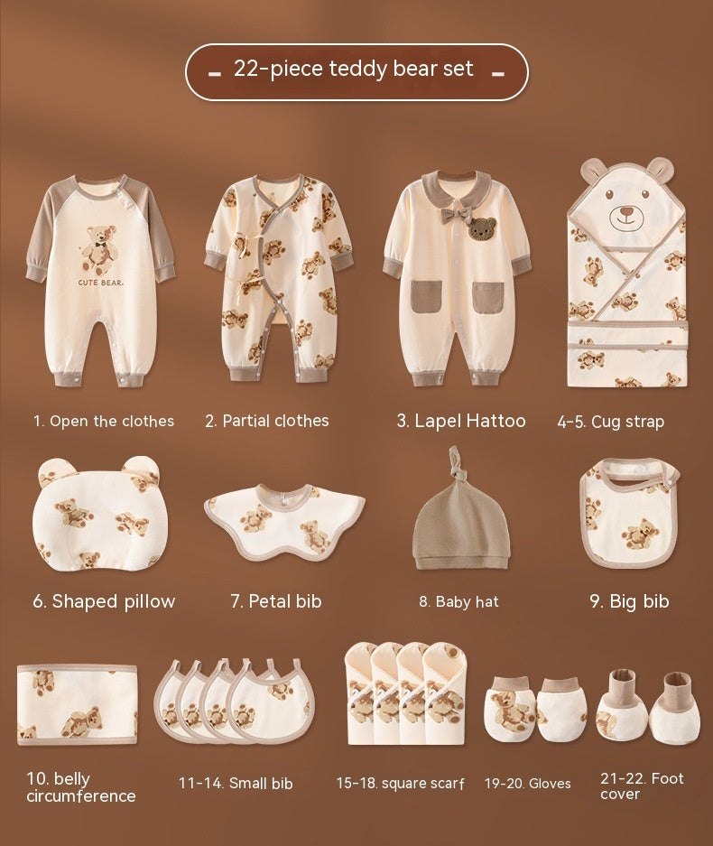 An elegant and heartwarming British teddy bear newborn gift box designed to welcome little ones with softness, comfort, and timeless charm. Each piece in this luxury collection features adorable teddy bear patterns in warm beige tones, offering a cozy and coordinated look for newborns.