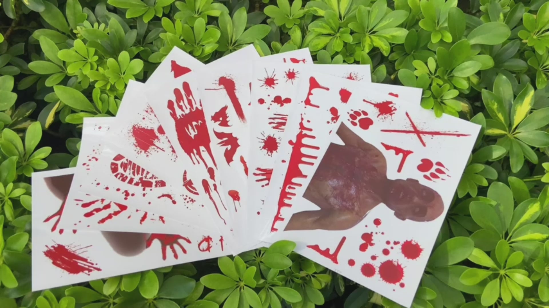 Made from self-adhesive PVC, these blood prints and splatters cling easily to windows and surfaces without leaving any sticky residue when removed.