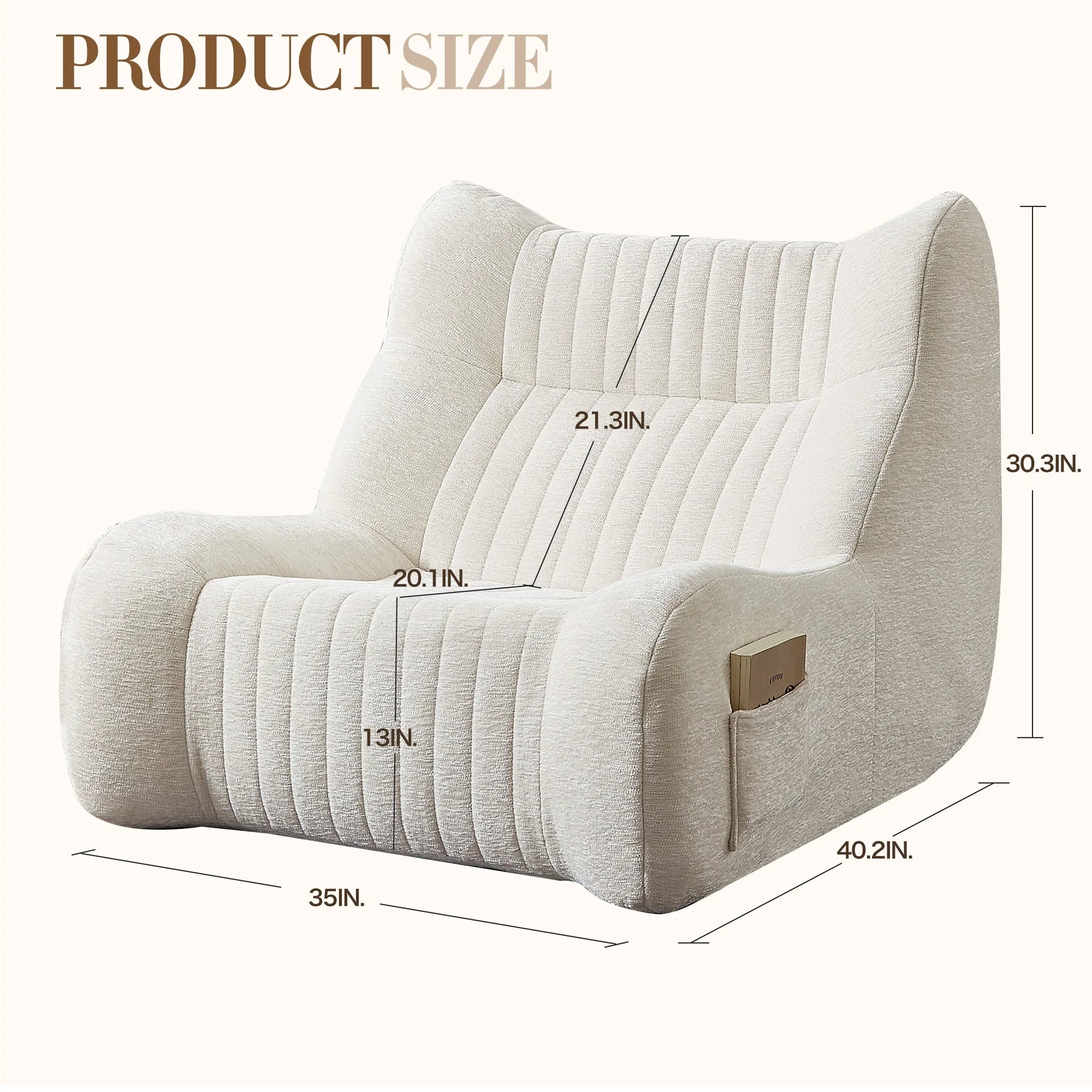 Adult with armrests, oversized beanbag chair, comfortable lazy sofa, living room, bedroom floor, leisure chair