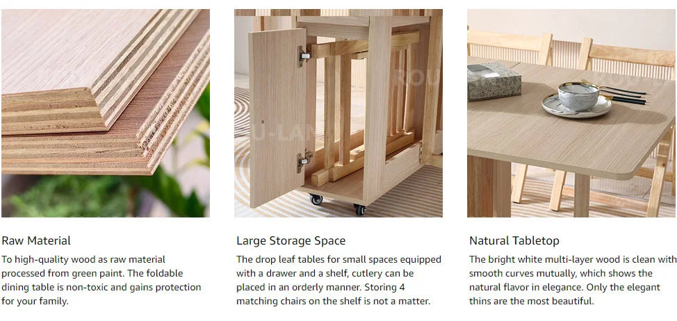 Folding Dining Table with 2 Drawers and 4 Wheels for Living Room,Kitchen, Farmhouse, Space Saving Table