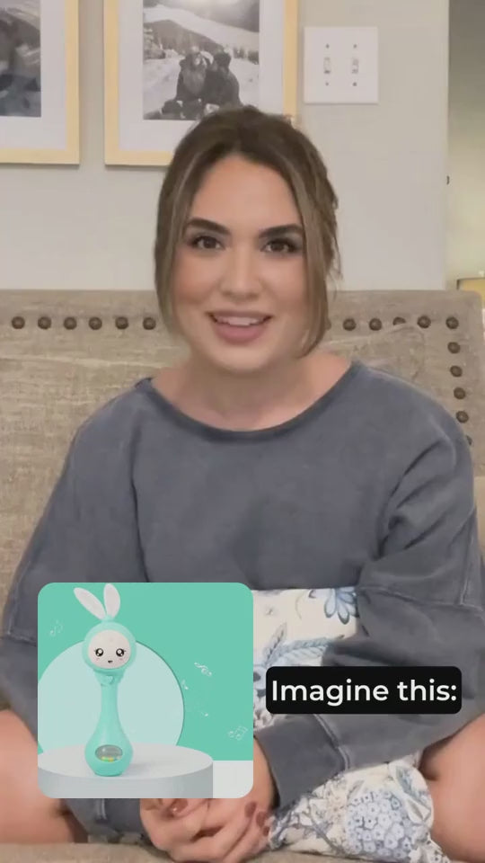 With chewable gum, Baby lullabies, Shakeable colored beans. The funniest educianal toy for your baby.