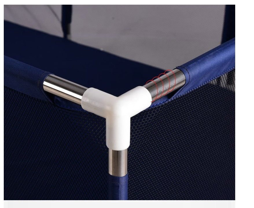 Our play yard is built with heavy-duty stainless steel tubes and reinforced joints, this playpen withstands energetic play. The anti-slip suction base grips floors firmly, ensuring stability even as toddlers pull up or explore. No more worries about knocks or tumbles!