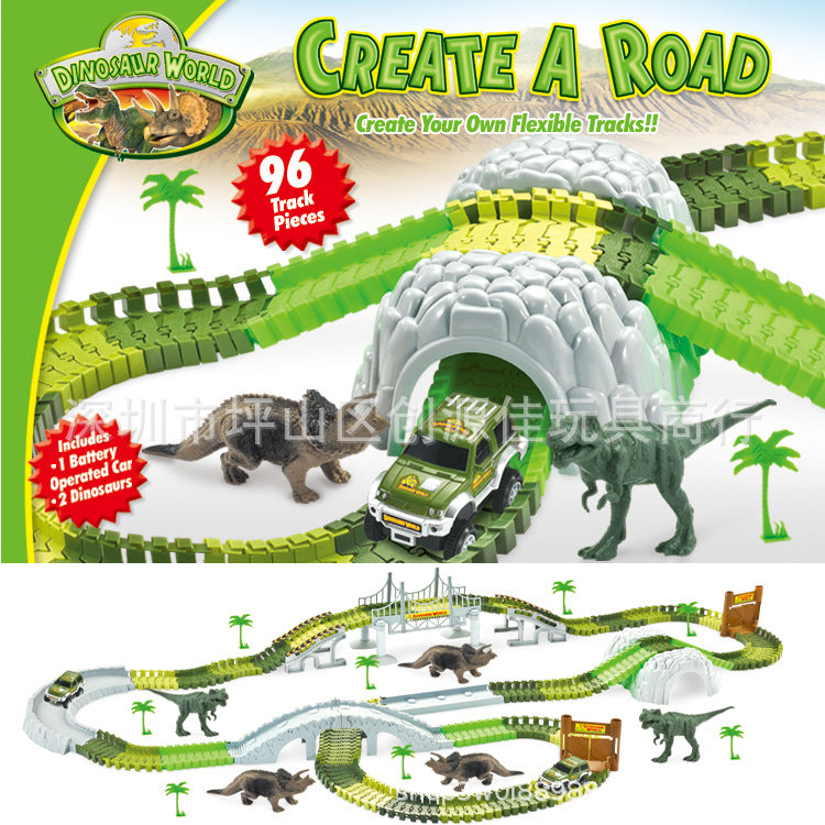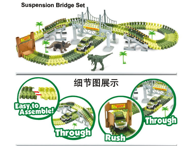Create a dinosaur-themed race car track. A good interaction toy for your kids. Exercise hand-eye coordination and color perception.