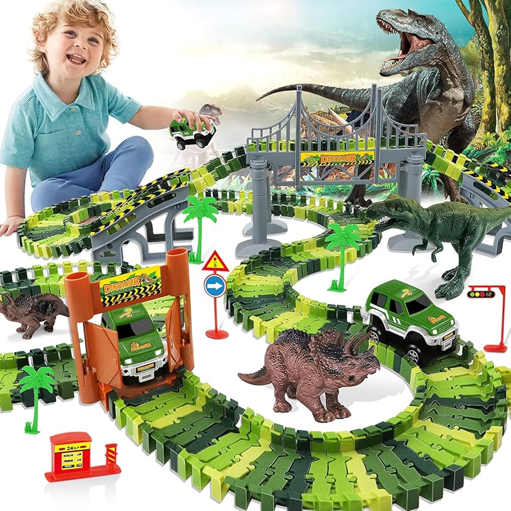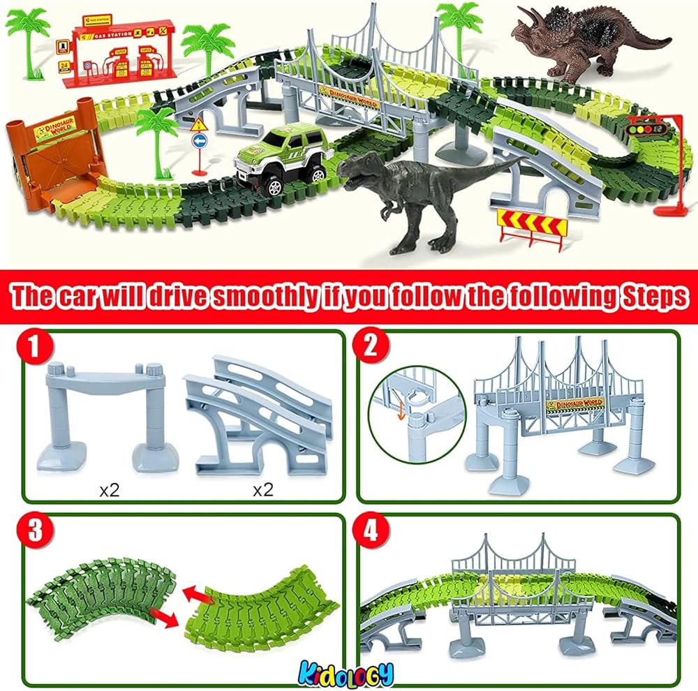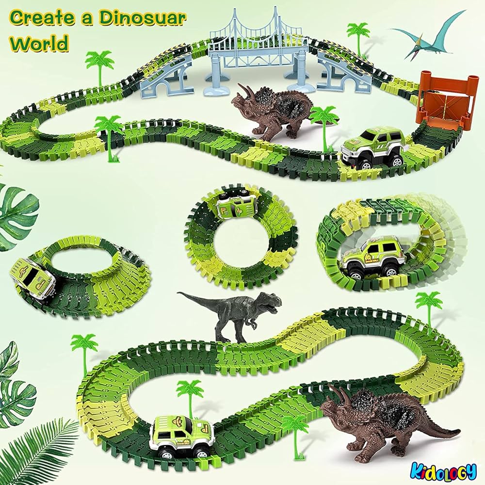 Vibrant color tracks, great attention to detail and accessories make it super valuable. It can be used as an educational tool to teach kids to learn more knowledge about dinosaurs world while playing. Inspire kid's imagination & exercise fine motor skills & eye-hand coordination. It is perfect for a birthday party, Christmas, holiday, or Impulse gift. Ideal gift for dinosaur & vehicle lovers.