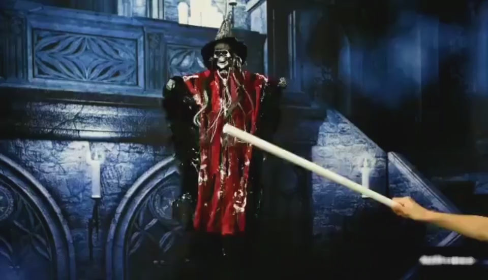Sound-activated ghost that suddenly moves to scare people into screaming.