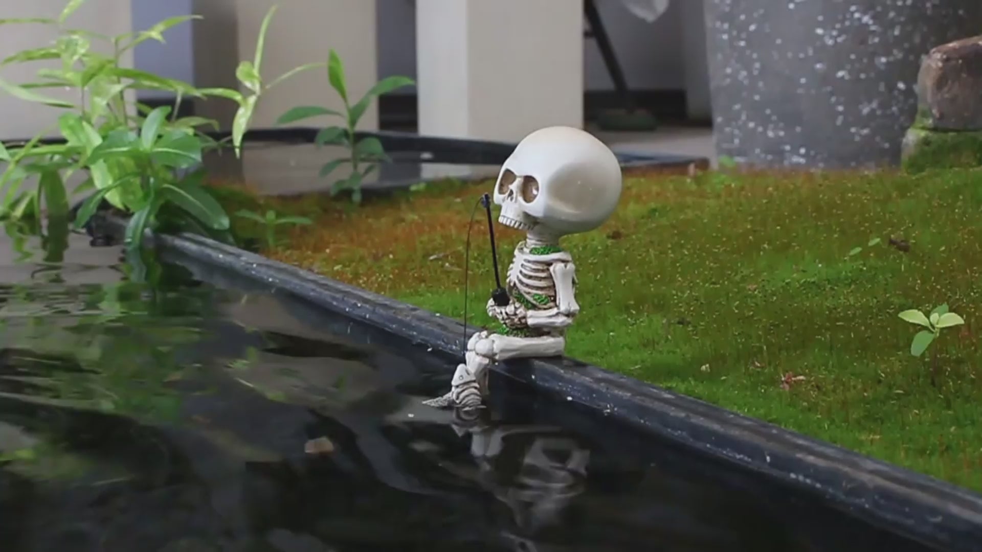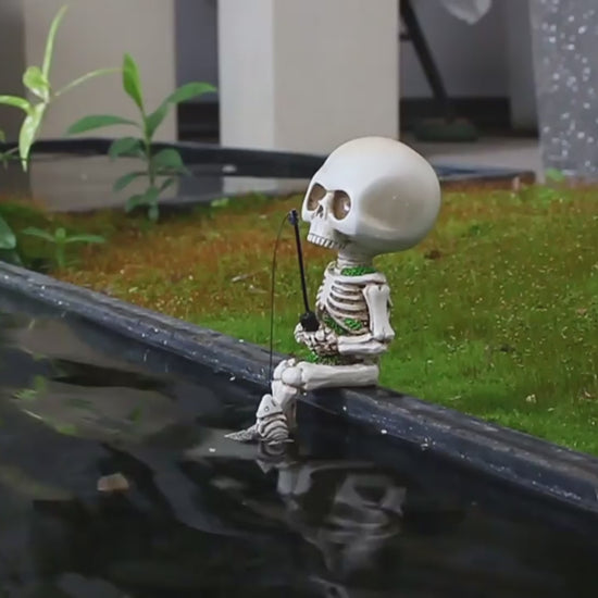 Add a touch of dark humor to your garden or Halloween décor with this adorable skeleton fisherman figurine. Sitting casually by the edge with a skeletal fish on his line, this piece perfectly blends spooky charm with playful creativity — ideal for both indoor and outdoor displays.