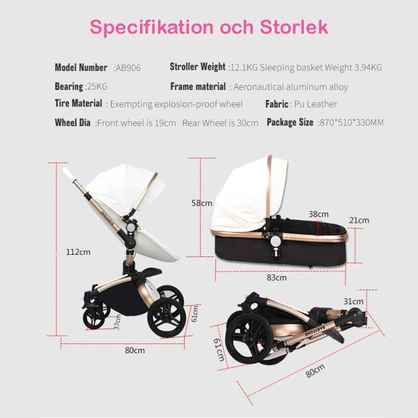The 3D shock absorption system can better protect the baby's brain and spine In addition, the 3D aluminum alloy frame can provide the stroller with great stability. In addition, the four wheel shock absorbers can push the pushchair forward.