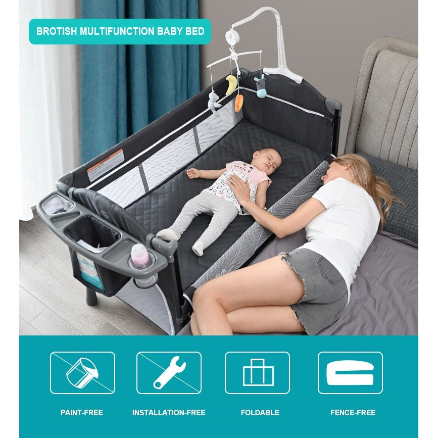 In conclusion, our crib is a multifunctional piece of furniture that is ideal for parents looking for a flexible and safe sleeping place for their children. It is easy to set up and fold down and is made of strong and durable material. It also has a cradle function, safety harness, adjustable backrest and footrest for a comfortable fit for the child.