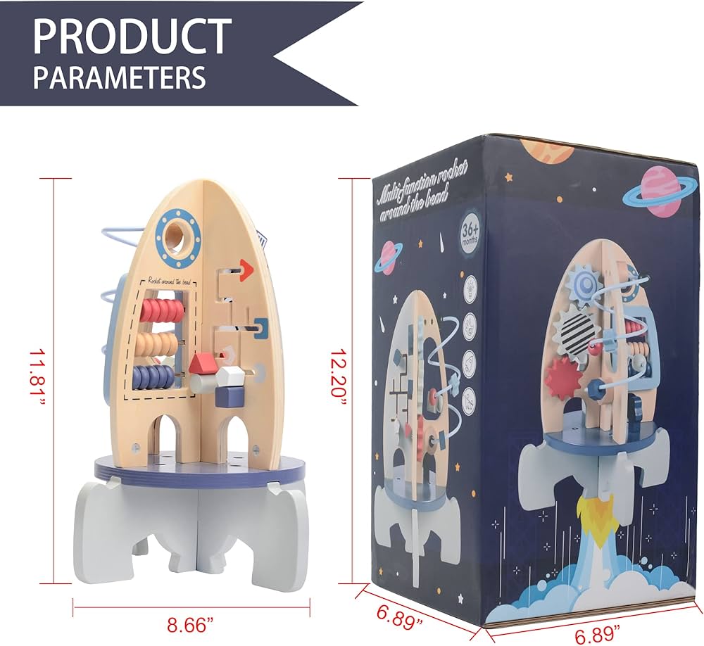 This rocket-shaped play center will quickly draw your toddler’s attention! It features 4 separated and independent panels which are equipped with multiple small toys such as bead coasters, gear game, clocks, and counting beads that will provide endless fun for your toddler!