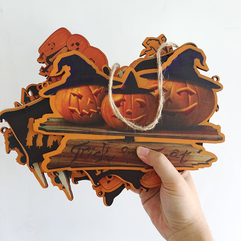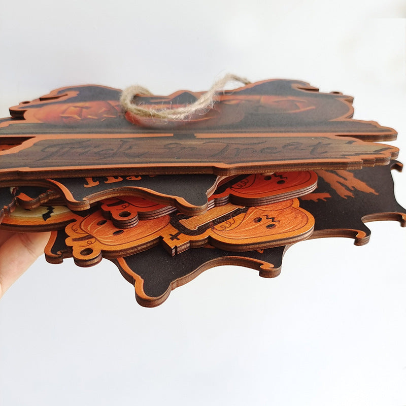 Welcome trick-or-treaters in style with this Halloween hanging sign. It captures the spooky yet playful spirit of Halloween. The rustic rope hanger makes it easy to hang on doors, walls, porches, or party spaces.