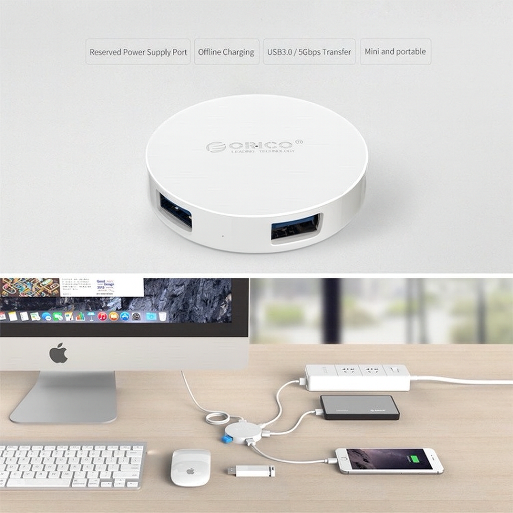 The hub is still suitable for use with 2.0 ports and devices, but the maximum speed is reduced to 480 Mbps. Thanks to its white finish, the hub complements any interior, desk, or workspace. Its stylish round design makes this hub a beautiful addition to any desk or workspace, ideal for expanding your laptop or notebook with additional USB ports. This is particularly useful when working from home, for example.