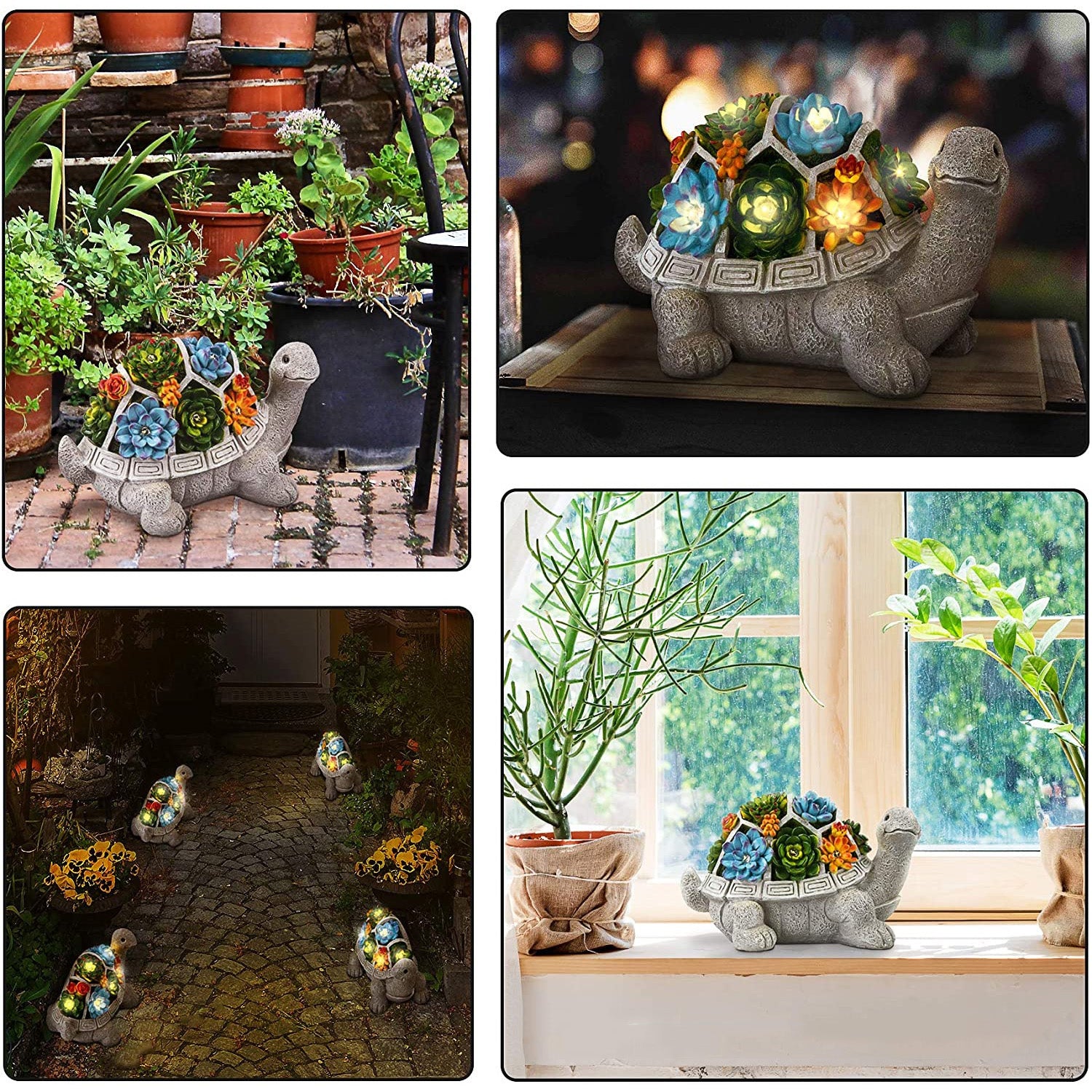 Suitable for gardens, trees, flowers, flower beds, fences, sidewalks. Plant this charming little sun succulent turtle garden statue anytime, anywhere, and enjoy the colors during the day and the soft light at night.