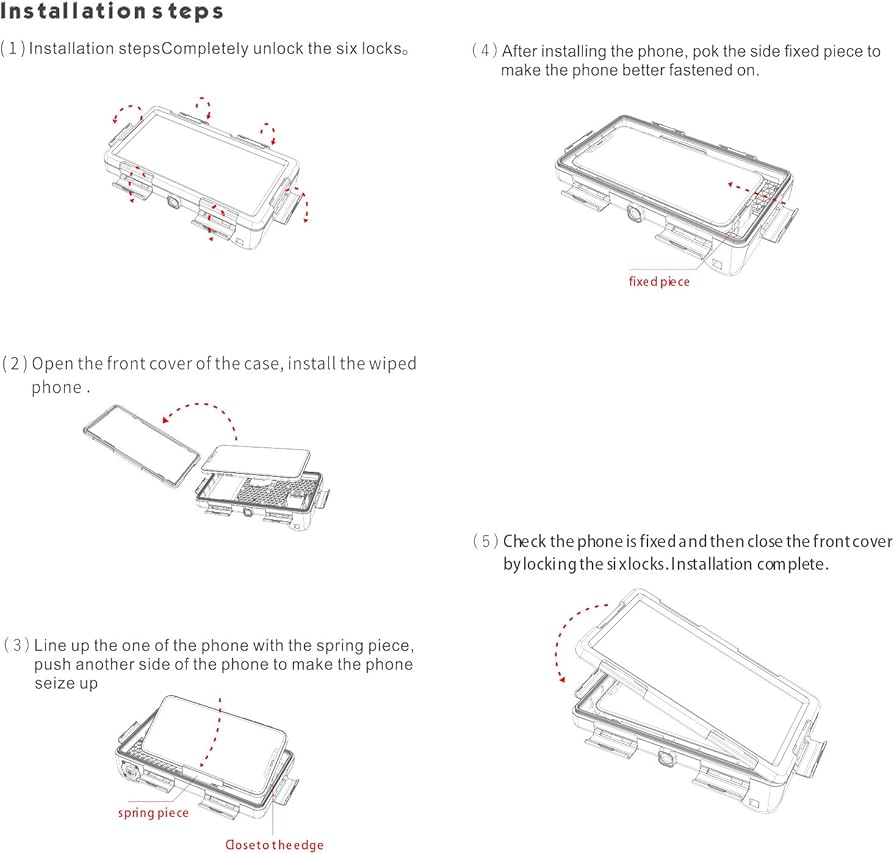 Please refer the instructions carefully before installation. This case is used for protecting your phone and taking great pictures when surfing, diving, snorkeling, or other outdoor activities. -