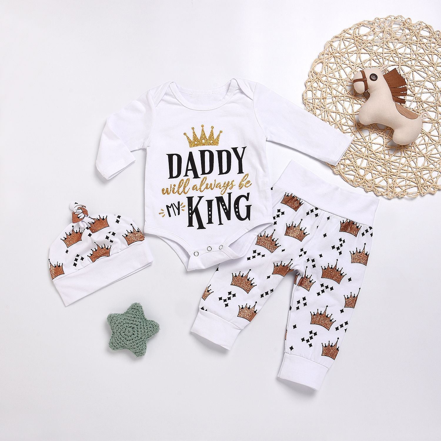 New Baby boys Clothing Set Tops Romper +Crown Pants