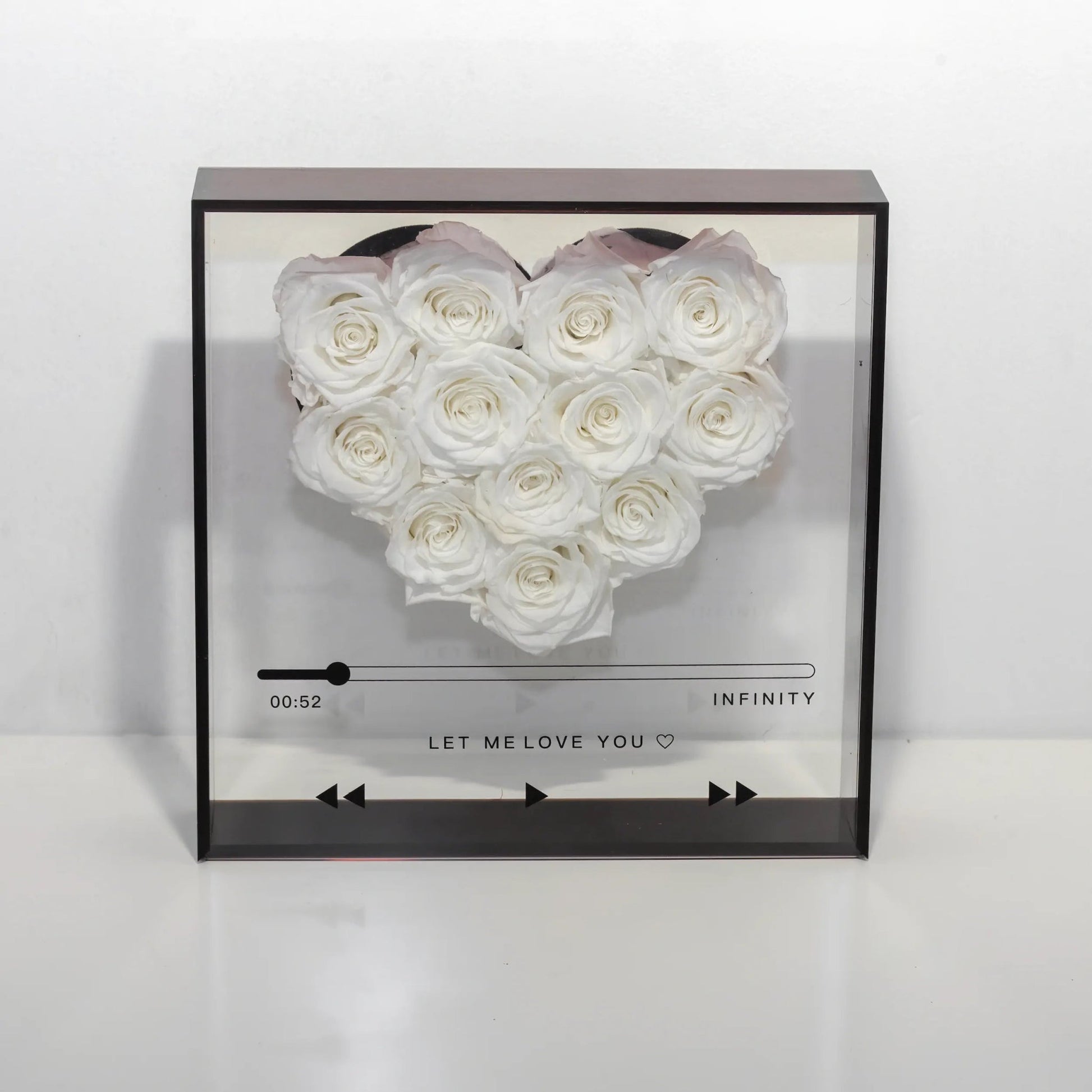 This elegant Heart Display Box is designed for those who want to create a personalized and romantic gift. The box features a transparent acrylic front styled like a music player with the text “Let Me Love You ♡,” adding a modern and emotional touch.
