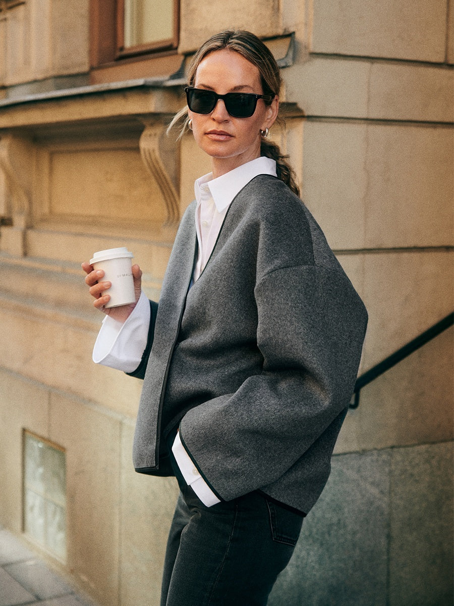 Women's Wool sweater jacket Blend Contrast Color Binding