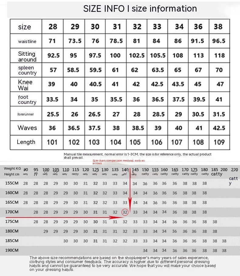 Size: 28, 29, 30, 31, 32, 33, 34, 36, 38