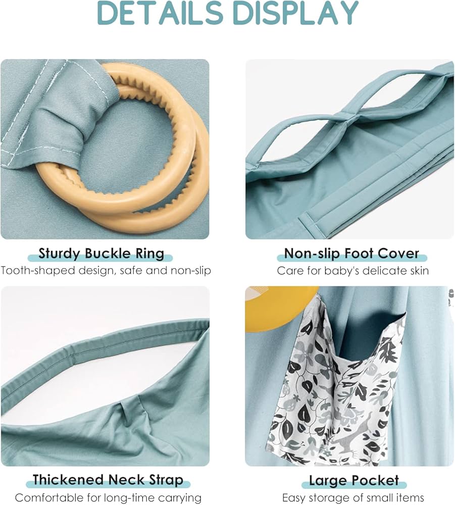 The baby sling has a seat belt to ensure the safety of your child. Designed with sturdy tooth-shaped rings, non-slip and durable to hold heavy weight. 5mm thickened headrest provides gentle care for baby's delicate skin, and the thickened neck strap reduces neck and shoulder pressure for mom and dad for comfortable carrying.