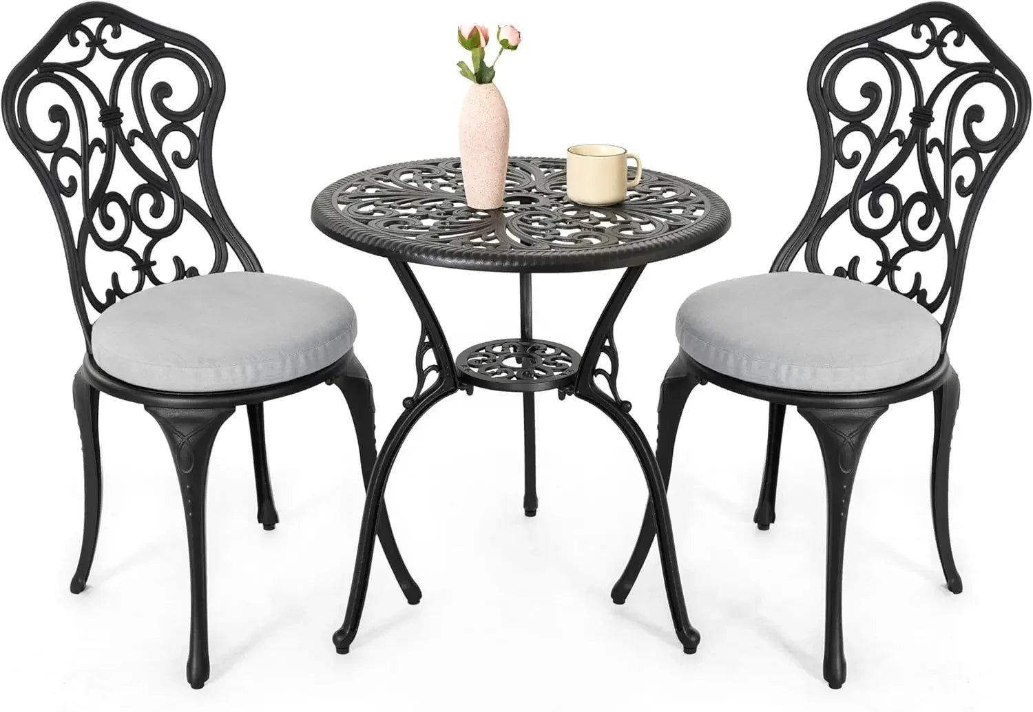 3 Piece Outdoor Bistro Table Set, All Weather Cast Aluminum Patio Bistro Sets Patio Table and Chairs Set of 2 with Umbrella Hole