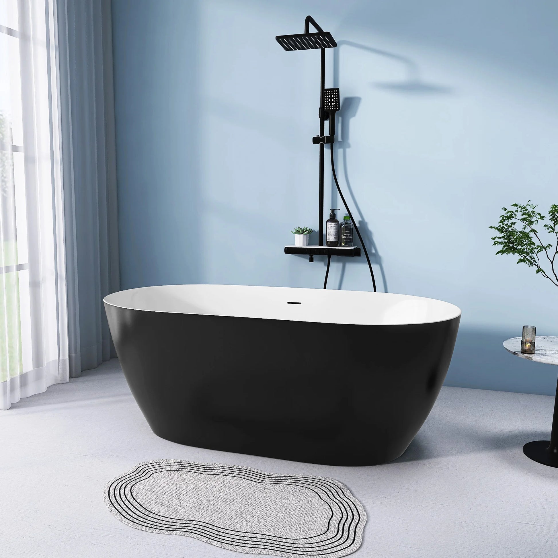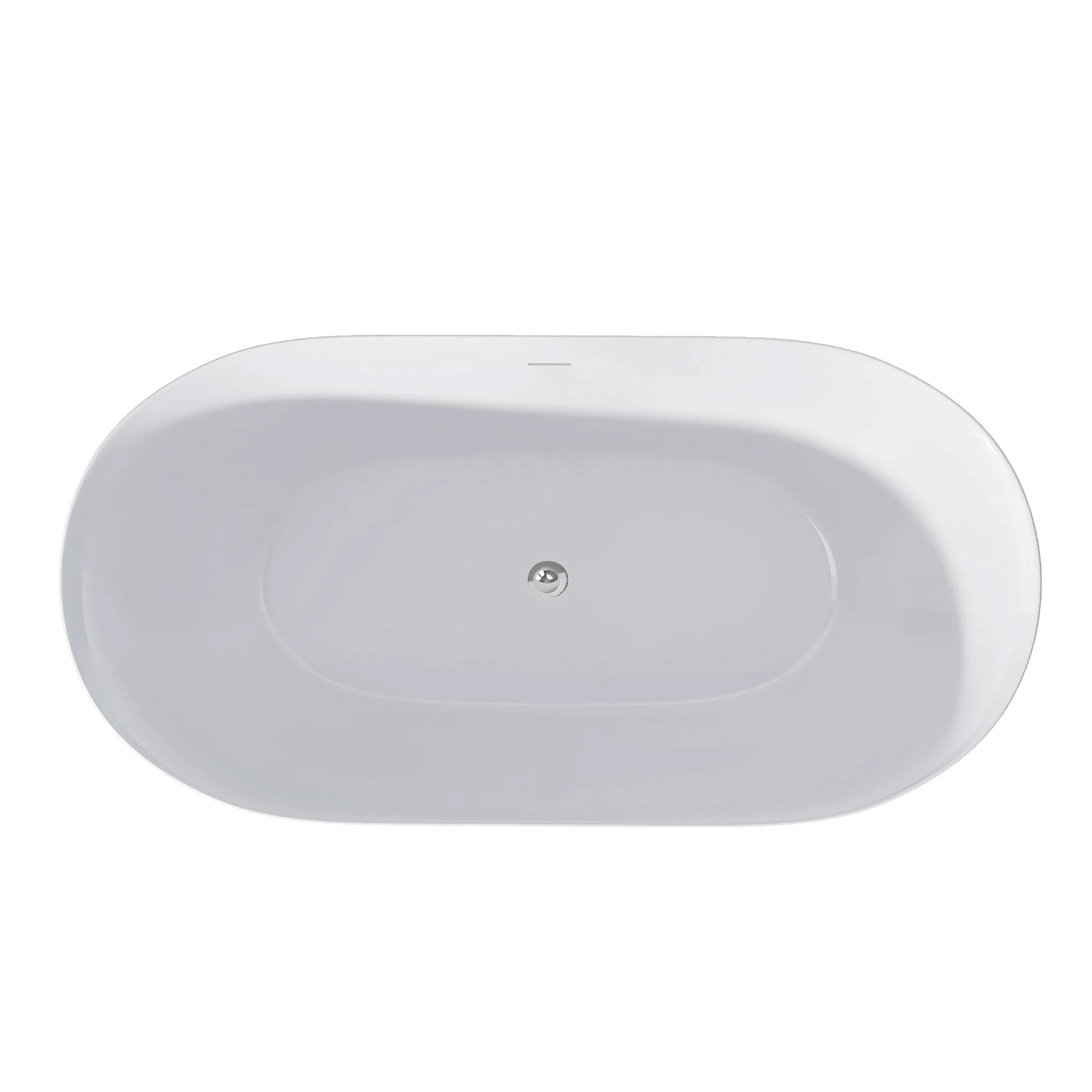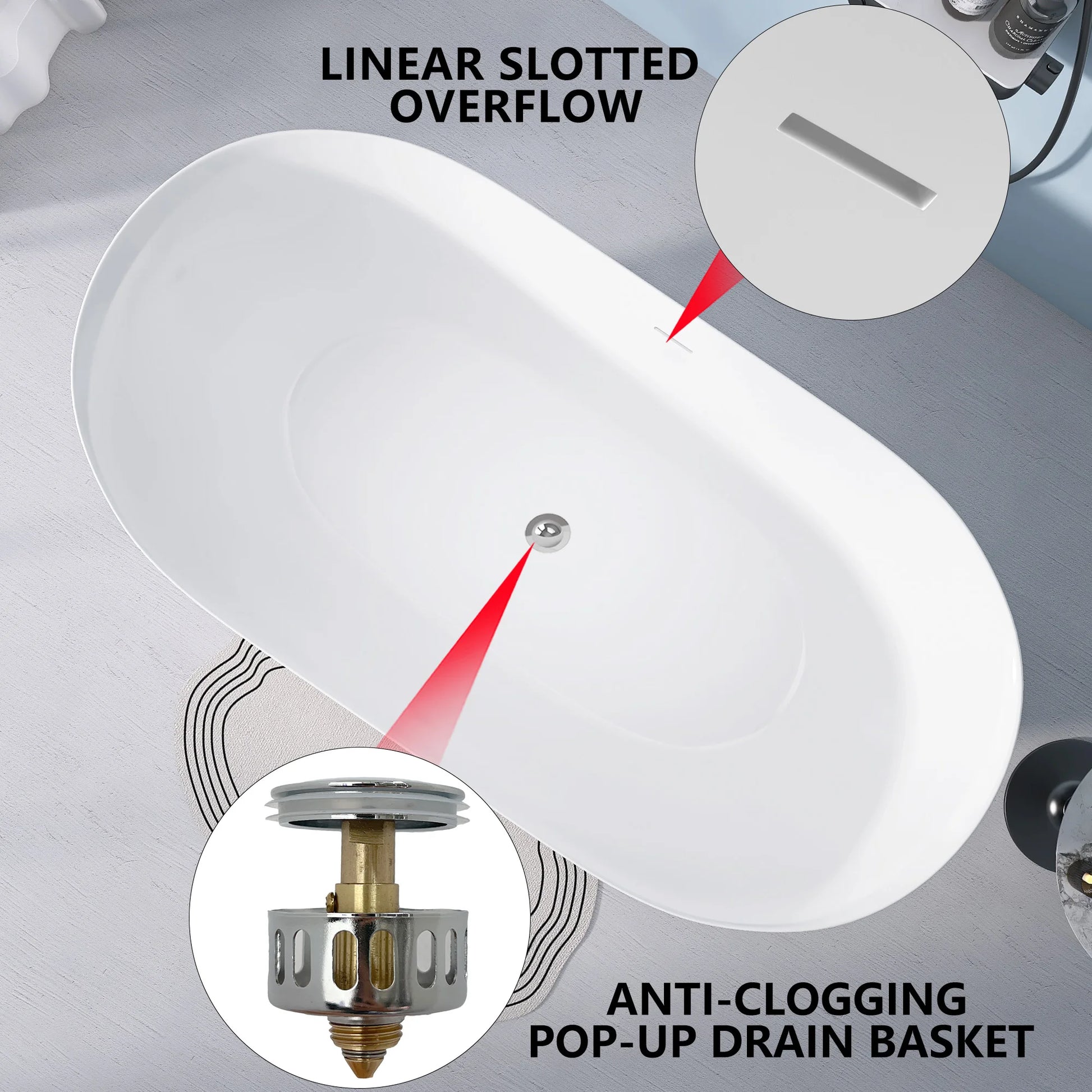 59" Acrylic Free Standing Tub Classic Oval Shape Soaking Tub Adjustable Freestanding Bathtub with Integrated Slotted Overflow an