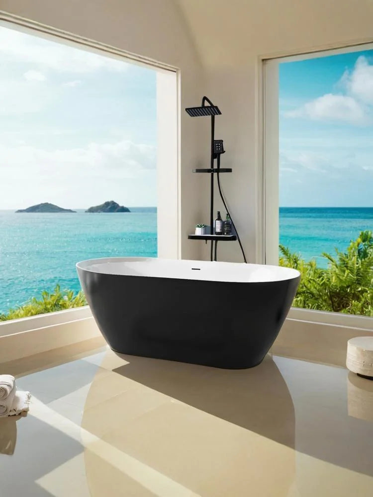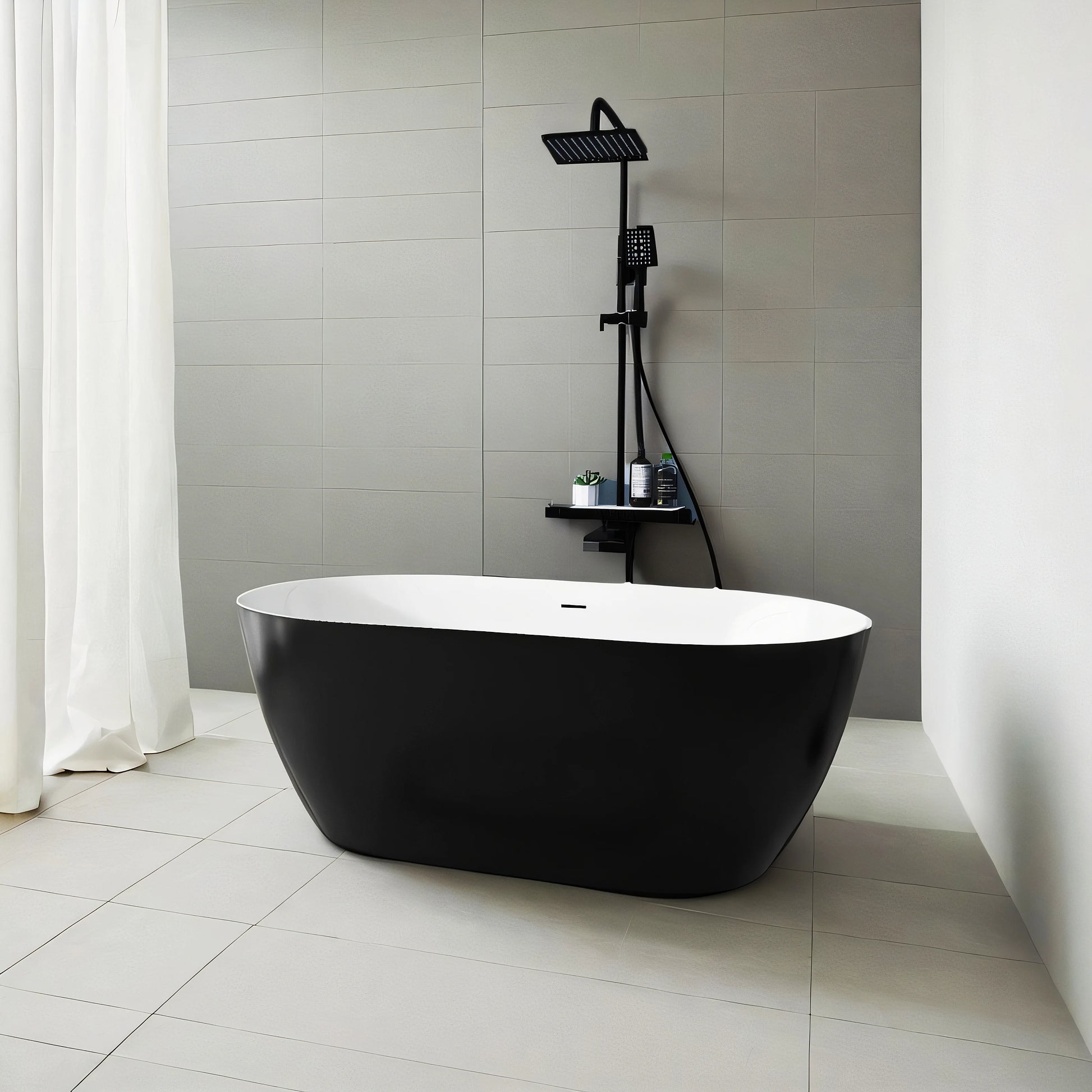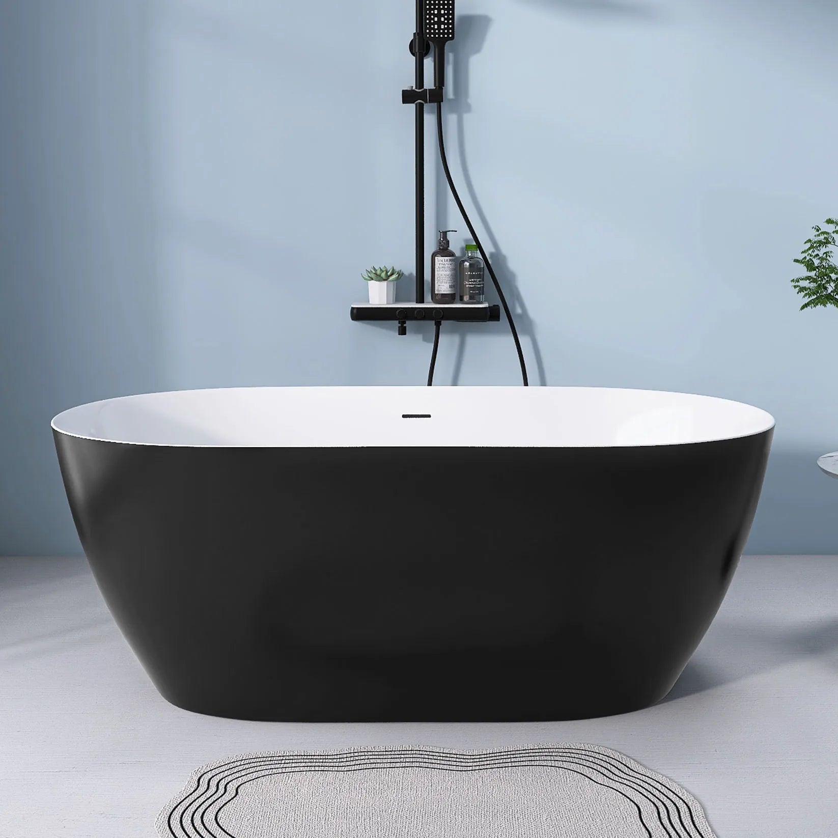 59" Acrylic Free Standing Tub Classic Oval Shape Soaking Tub Adjustable Freestanding Bathtub with Integrated Slotted Overflow an