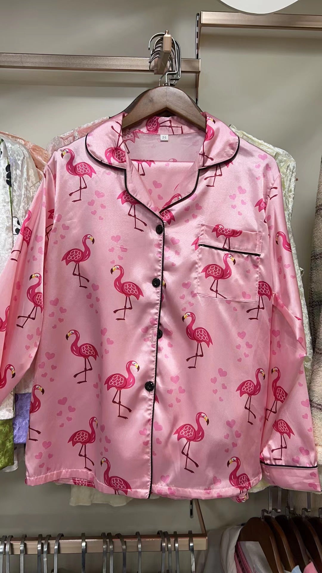 Woman pajamas Sweet Luxury 5050 Artificial Silk Lapel Long Sleeve Trousers Home Wear Two-piece Suit