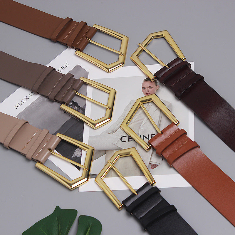 Concave Shape Large Pin Buckle Cowhide Wide Belt