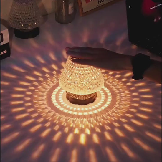 Cordless battery-powered crystal lamp. As a decorative table lamp, this crystal shape lamp fits any house and is a good choice for the bedroom and living room.