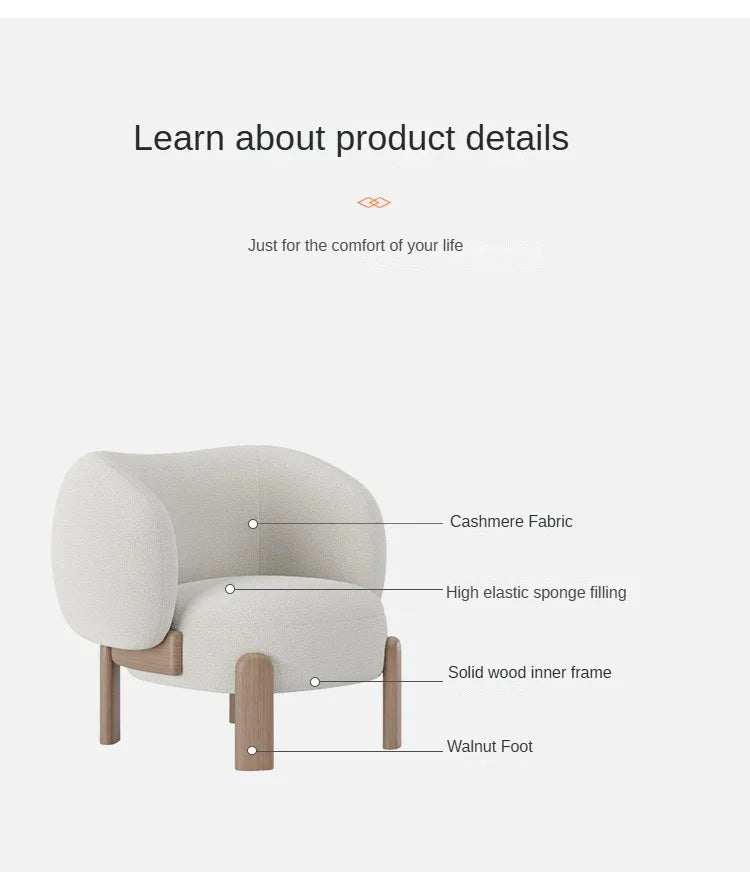 Single Sofa Chair for Living Room Furniture Upholstered Accent Chair Lambswool Fabric Lounge Chair Bedroom & Apartment Use