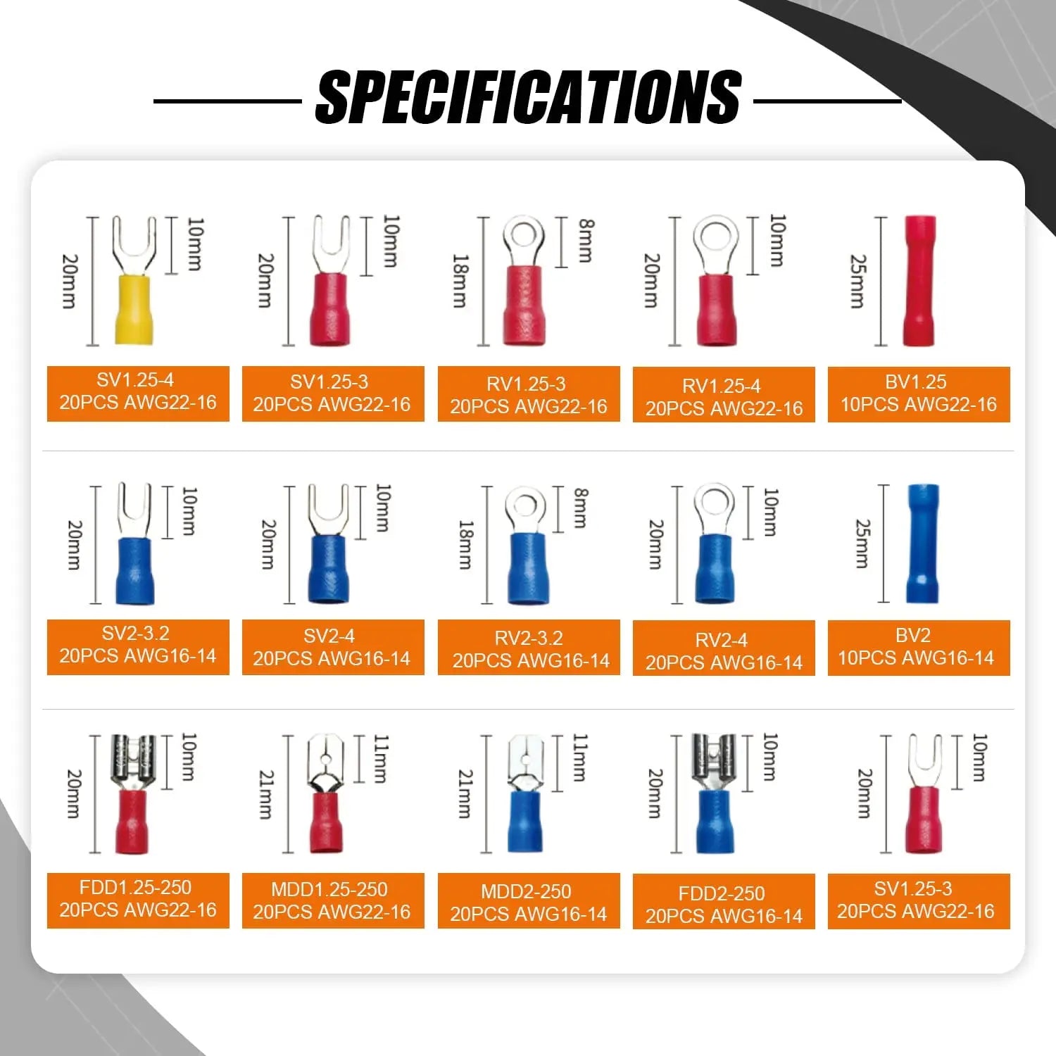 SN-02C Wire Crimping Tool Kit AWG 23-13 280PCS Insulated Wire Electrical Connectors-Butt, Ring, Spade, Cable Lugs Wire Crimp Set