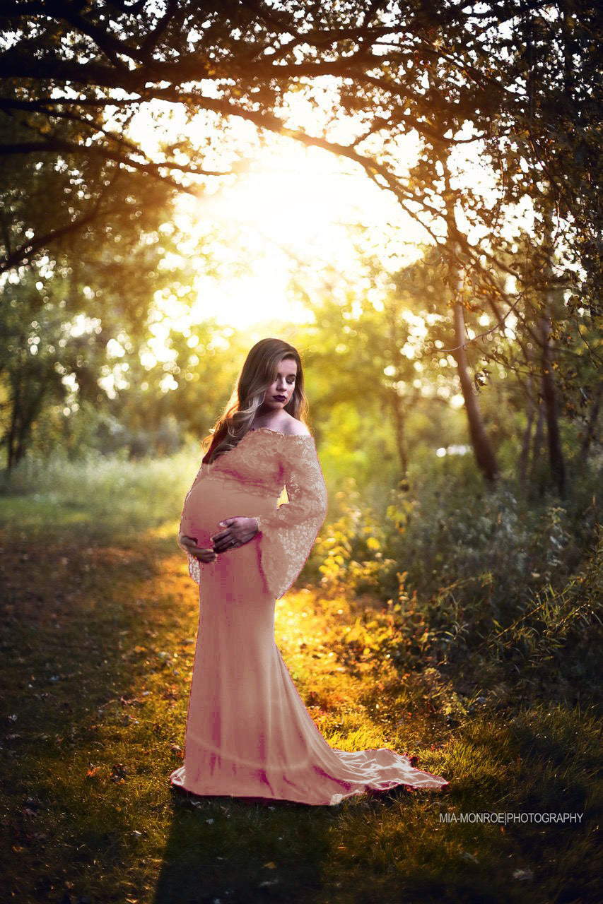 Women's Lace Long-sleeved Mercerized Cotton Off-neck Maternity Dress