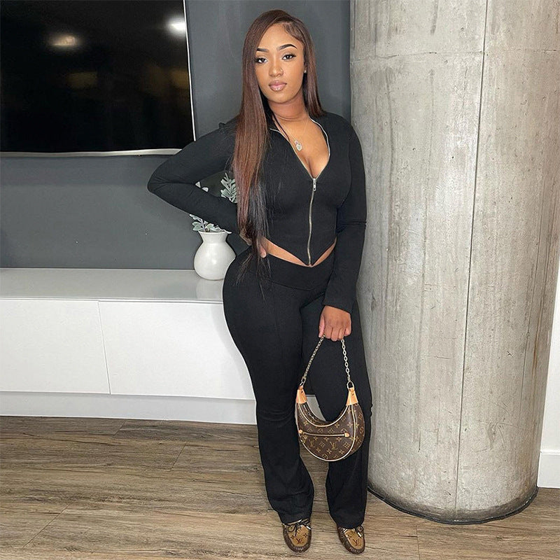 High Waist Bootcut Pants Leisure Sports Two-piece Set